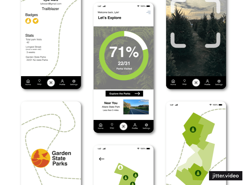 Garden State parks solves the problem of discoverability that parks and natural spaces suffer from in New Jersey. Garden State Parks consists of an app, a website, merchandise, and various forms of advertising and promotion.